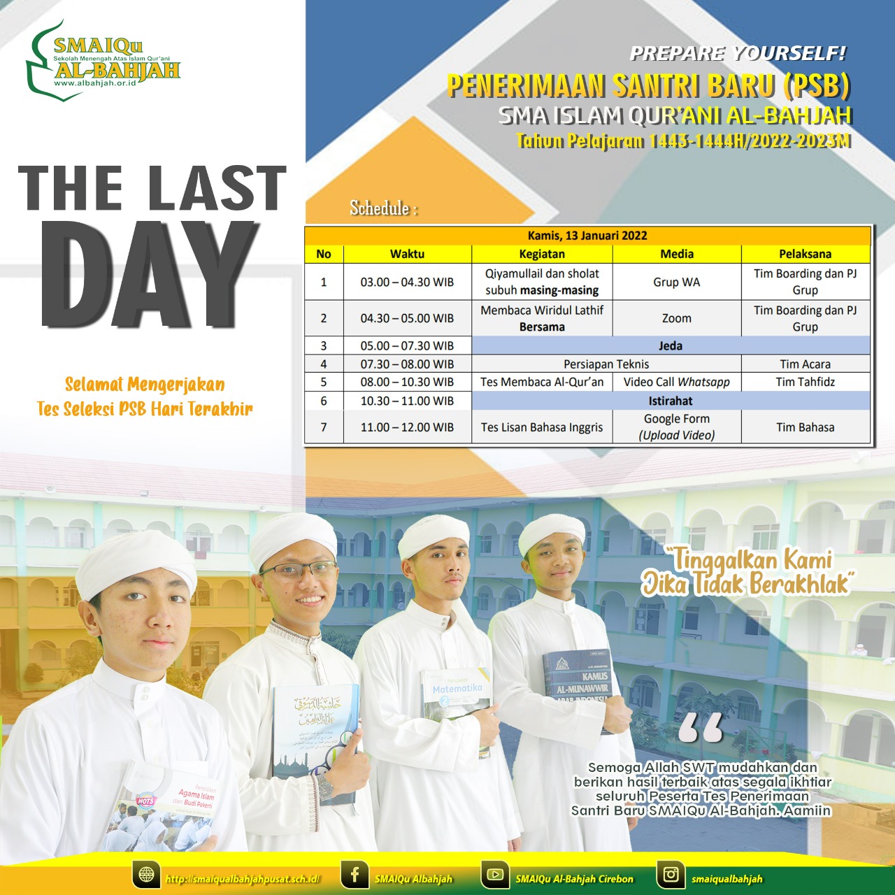 Bismillahirrahmanirrahim, hari ini merupakan hari Terahir Tes Penerimaan Santri Baru (PSB) SMAIQu Al-Bahjah Tahun Pelajaran 1443/1444 H atau 2022-2023 M.