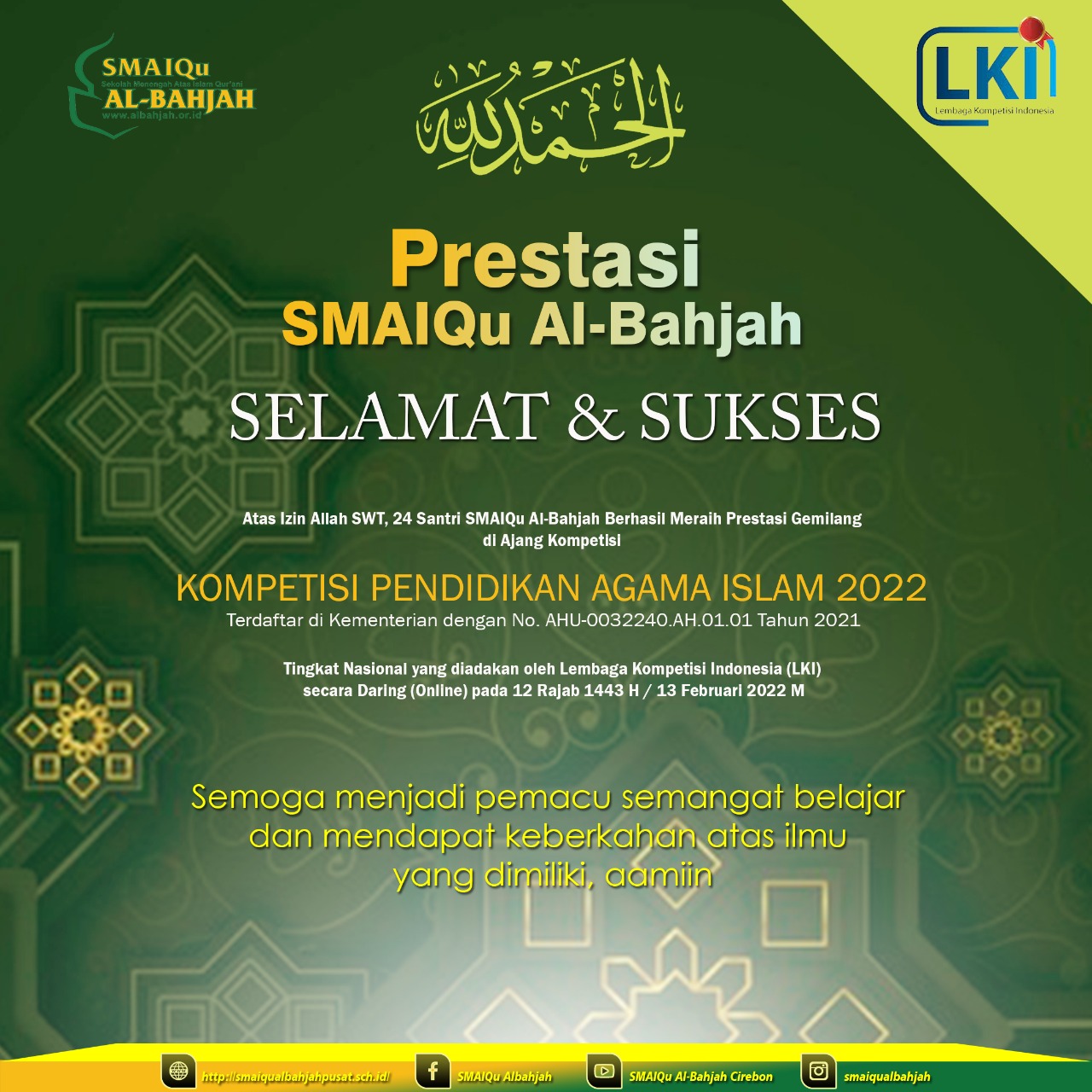PRESTASI SANTRI SMAIQU AL-BAHJAH Mengikuti KOMPETISI PENDIDIKAN AGAMA ISLAM 2022 Pilihan