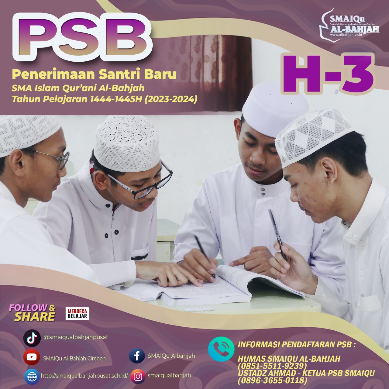 H-3 Pendaftaran Santri Baru SMAIQu Al Bahjah Cirebon Tahun Pelajaran 2023/2024 Pilihan