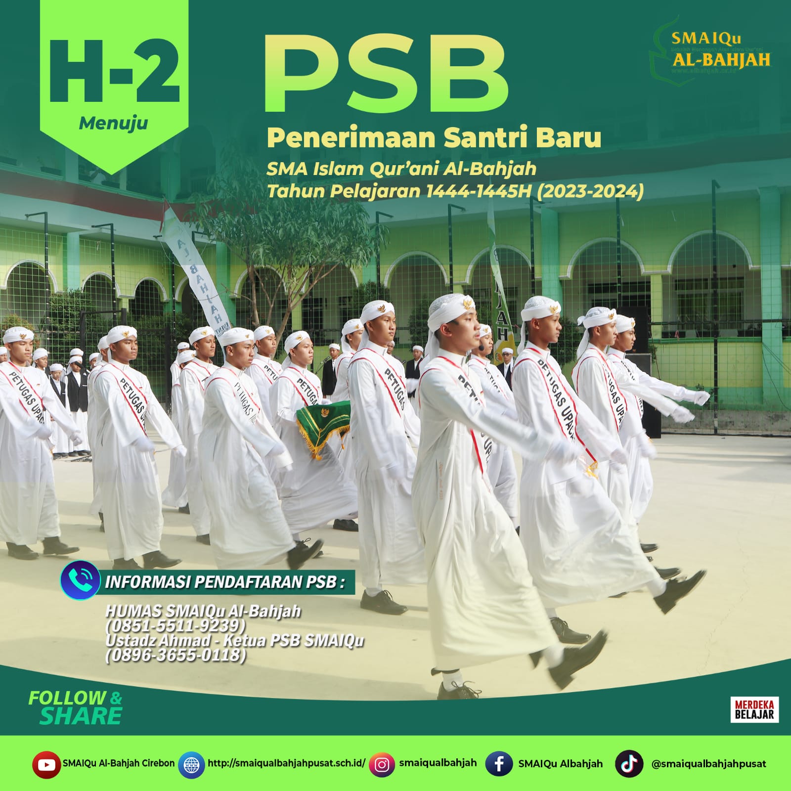 H-2 Pendaftaran Santri Baru SMAIQu Al Bahjah Cirebon Tahun Pelajaran 2023/2024 Pilihan