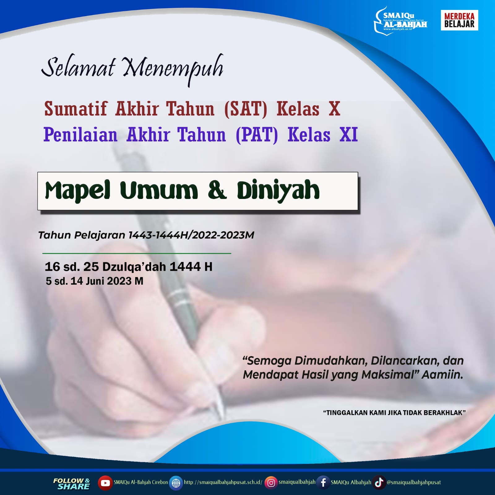 Semoga para santri SMAIQu Al-Bahjah dimudahkan dalam mengikuti kegiatan SAT & PAT ini kelak menjadi ilmu yang berkah baik di dunia maupun di akhirat nanti.