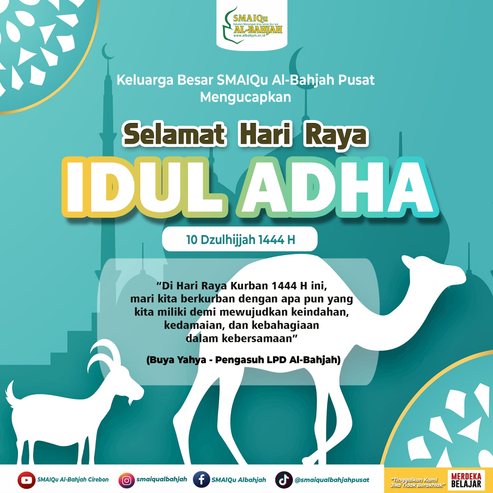 Segenap Keluarga Besar SMAIQu Al-Bahjah Pusat, mengucapkan Selamat Hari Raya Idul Adha 10 Dzulhijjah 1444 H.