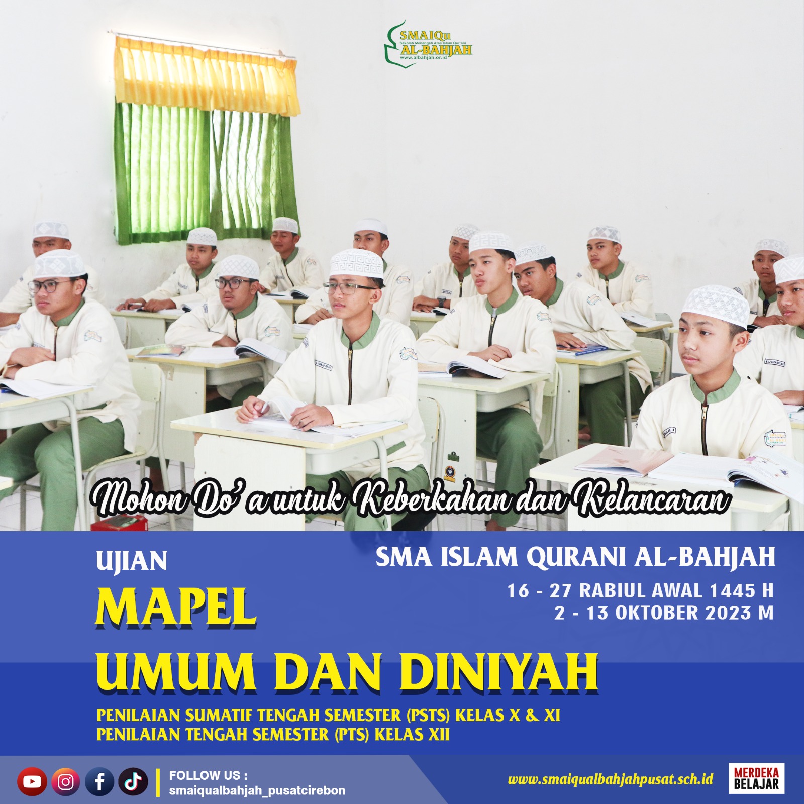 Semoga para santri SMAIQu Al-Bahjah dimudahkan dalam mengikuti kegiatan PTS & PSTS ini, serta diterbukakan ilmunya dan menjadi ilmu yang berkah baik di dunia maupun di akhirat kelak.