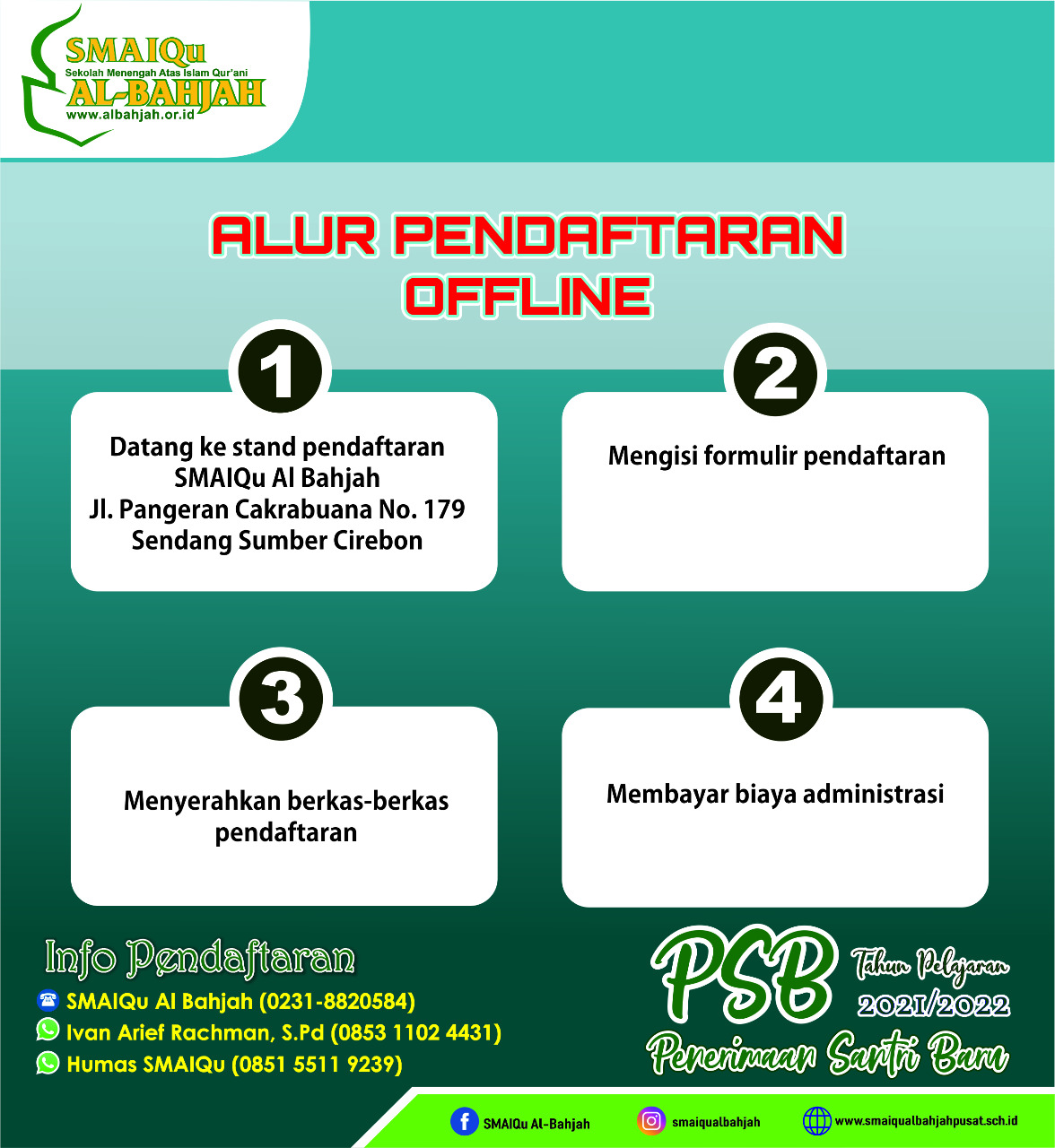 - Via website : www.smaiqualbahjahousat.sch.id