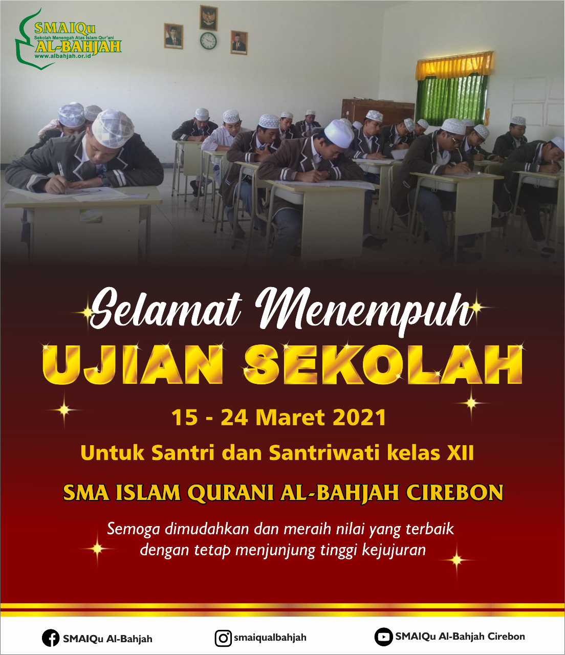 Mohon doanya semuanya terutama orang tua kami untuk kemudahakan para Santri khususnya kelas XII yang sedang menempuh Ujian Sekolah pada tanggal 15-24 Maret 2021.