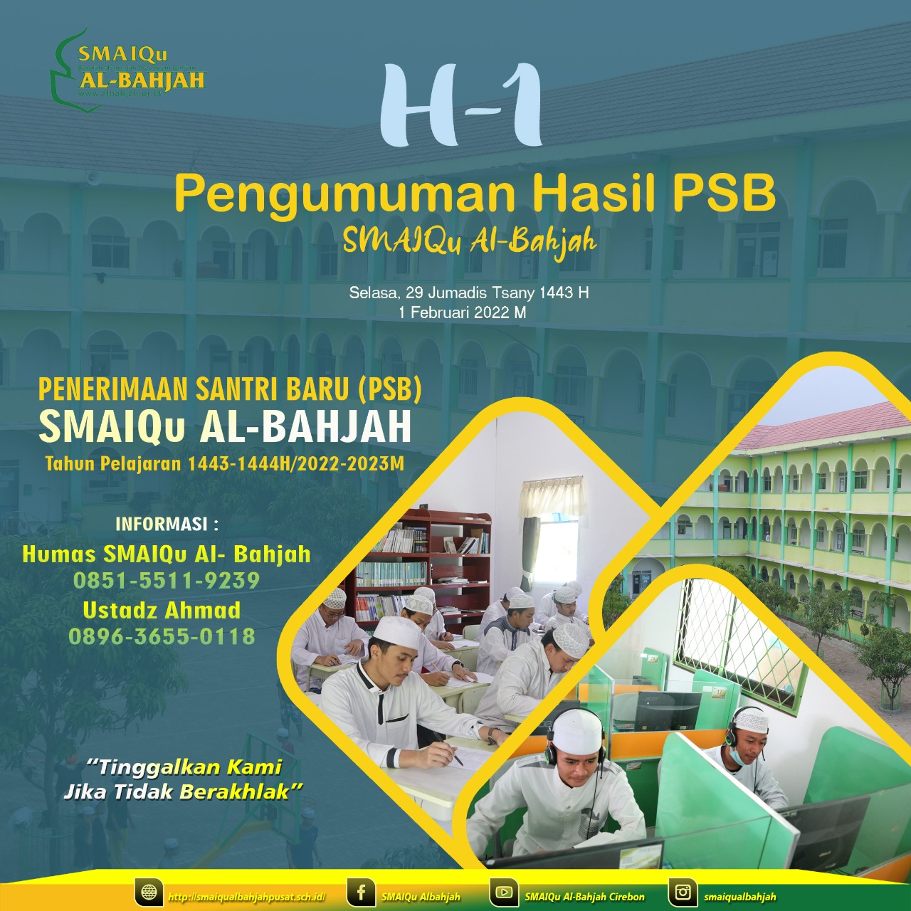 *H-1 Pengumuman Penerimaan Santri Baru-baru SMAIQu Al Bahjah Cirebon Tahun Pelajaran 1443/1444 H atau 2022/2023*
