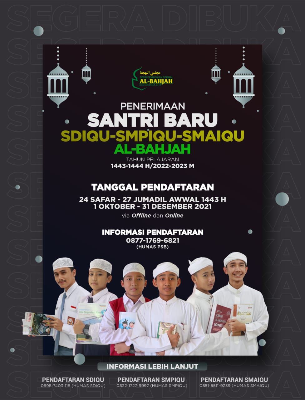 Pendaftaran Santri Baru SMAIQu Al Bahjah Cirebon Tahun Pelajaran 1443/1444 H atau 2022/2023
