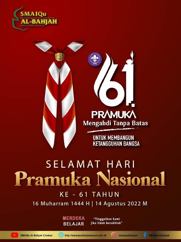 Segenap Keluarga Besar SMAIQu Al-Bahjah Pusat, mengucapkan Selamat Hari Pramuka Nasional Ke 61