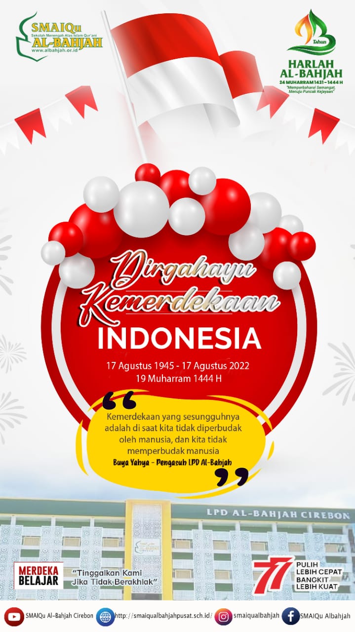 Kami keluarga besar SMAIQu Al-Bahjah Pusat mengucapkan *Dirgahayu Republik Indonesia, Selamat Ulang Tahun ke - 77 Republik Indonesia.*